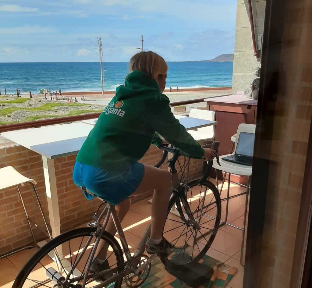 The Canary Islands are a beautiful place to live and train. But in the early days of Covid-19 Spain was a tough place to be, as we had, I think, the strictest confinement measures imaginable. No leaving the house other than for groceries or to take out the trash. No outdoor exercise. No outdoor anything. My daughter didn’t leave our apartment for weeks. I had a bike trainer which I setup on the balcony, and we all used it. Myself, my wife, and my daughter. Oh, did I forget to mention that we had recently moved into a small apartment just next to the beach? By “just next to the beach,” I mean we could walk out our front door in a bathing suit, walk about 100 meters, and jump in the water. It was right there, so close. But during those confinement days the beach was pristine and empty every day, just out of reach. It looked great from our balcony as we sweated away on the trainer.